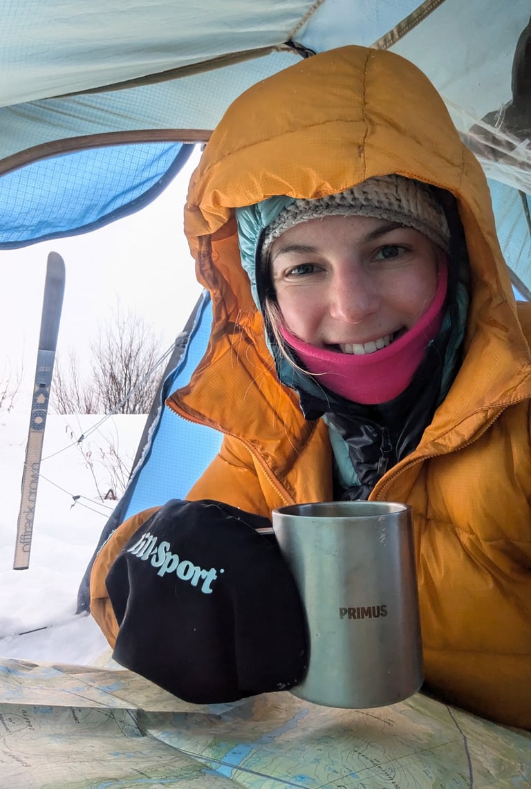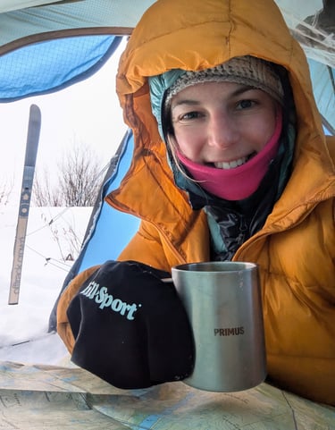 Mon amour pour les paysages du grand nord m'a conduite à habiter plusieurs années en Suède. Depuis, je réalise chaque hiver une expédition solo en skis de randonnée nordiques en dormant sous la tente.