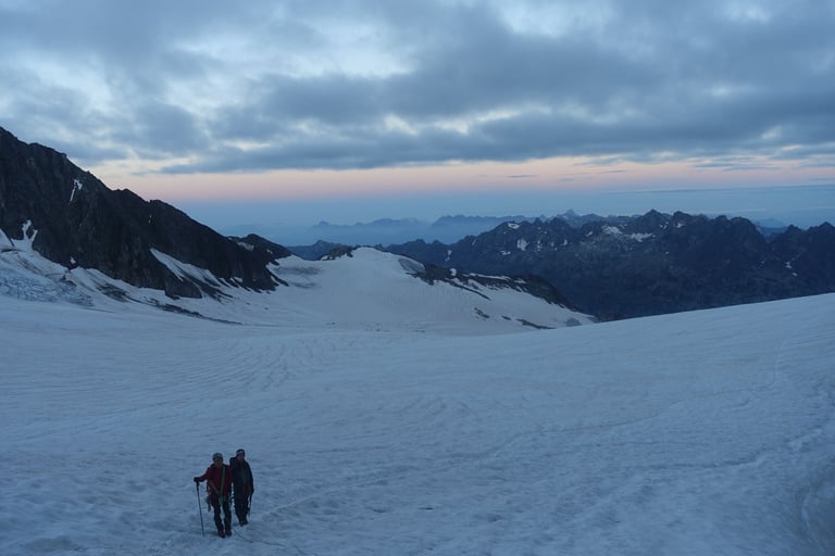 Mon attirance pour les glaciers et ces hautes montagnes m'a menée vers l'alpinisme. La beauté des paysages, l'intensité et le partage avec des amis. Voici quelques aventures entre la France et la Suisse. Toutes les sorties sont réalisées en autonomie entre amis.