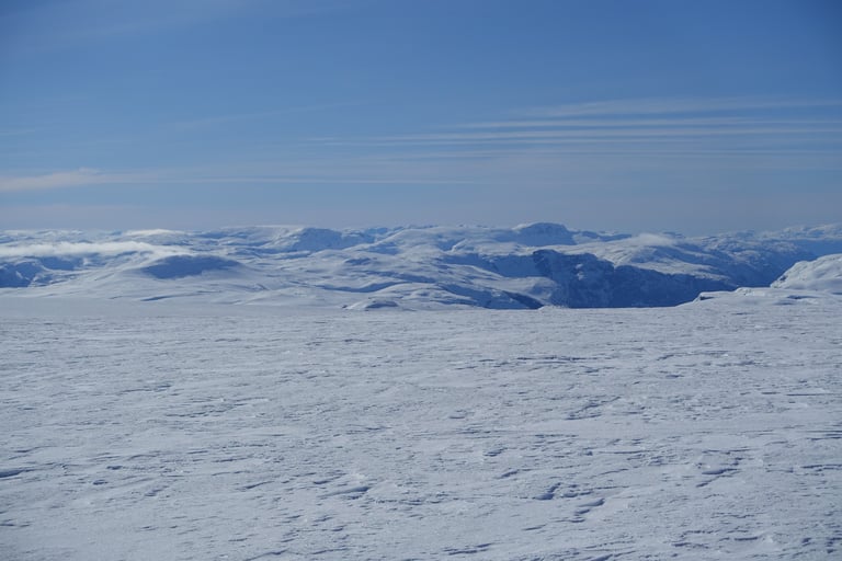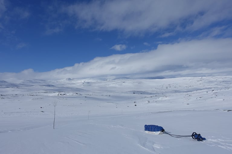 J’aspirais cette année à de vastes étendues et du blanc à perte de vue. Ce sera le Hardangervidda, un endroit mythique dont les histoires enchantent les passionnés d'expéditions polaires. Ce haut plateau norvégien était un rêve de longue date. Récit jour par jour de ce raid à skis en solitaire et autonomie de 10 jours avec la pulka et la tente. Du 23 mars au 1er avril 2024.