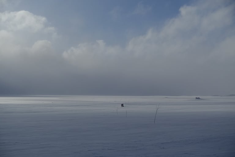 4e jour de White Out. Des paysages magnifiques et si sauvages. Mental à rude épreuve avec des sabots démentiels dans une neige collante. Timides éclaircies dans une partie montagneuse surprenante après des jours d'immensités. Tempête qui s'intensifie et qui signe la première nuit en cabane. Très belles rencontres inspirantes. Défense des provisions contre une souris coriace.