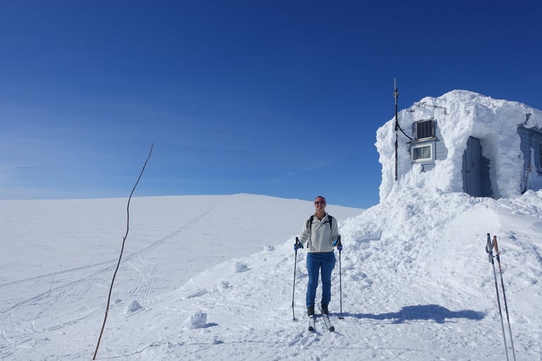 Panorama sublime après la tempête. Quel bonheur d'être juste là. Plaisir simple de la vie : partir le matin avec des chaussures sèches grâce au poêle, grand luxe ! Retour progressif sur le plateau et ses paysages infinis. Toujours si incroyable d'être sur les skis toute la journée. Quand on t'apprend qu'ils ont des douches au prochain refuge, impossible de résister. Retrouvailles avec des compagnons de route et nouvelles belles rencontres.