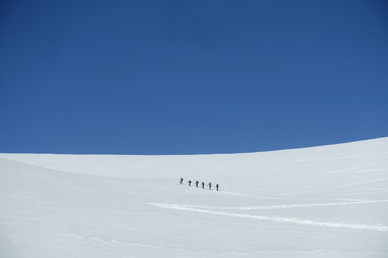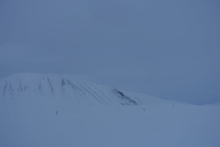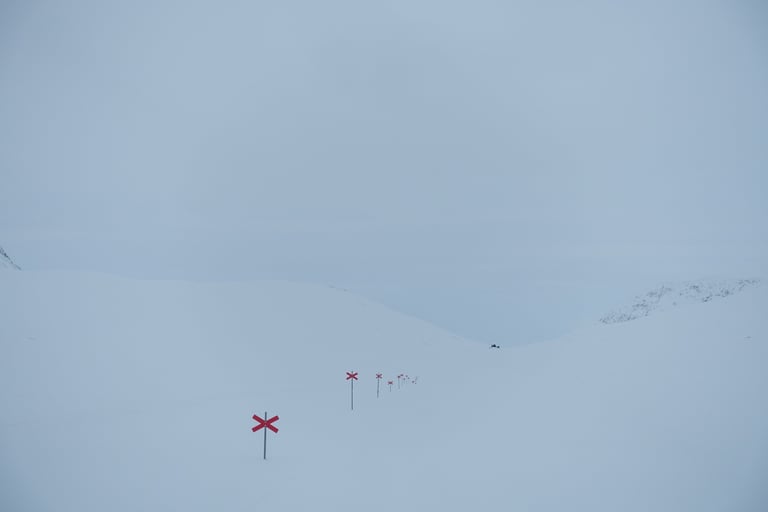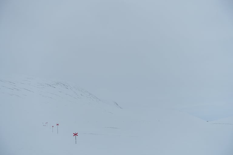 Le temps a bien changé pendant la nuit. Les prémices de la tempête sont là. Tout est blanc avec quelques reliefs qui se dévoilent, il y a une ambiance mystique. Les croix indiquant le chemin tranchent rompent le monochrome. Je skie vite, je suis en forme et une envie de découvrir ses paysages m'habite. De belles rencontres à la pause déjeuner au refuge de Tjäktja. Puis je repars pour doubler l'étape du jour. La motivation est double : profiter du petit créneau météo et surtout de s'installer dans le refuge avec sauna pour la tempête. Beaucoup de vent jusqu'au col, dans cette montée chargée de souvenirs. En 2014 j'avais de la neige au genoux en juin ! Puis la descente dans l'autre versant signe le retour du calme. Il y a le silence total, seulement rompu par le glissement des skis. Je fais donc plusieurs pause pour profiter de cet instant suspendu. Arrivée tardive à Sälka, où il y a déjà beaucoup de monde, quel contraste ! Quelle chance, le gardien me propose une petite chambre seule, grand luxe ! La soirée sera remplie de rencontres très enrichissantes, qui ont nourri mon envie de me former comme guide polaire.