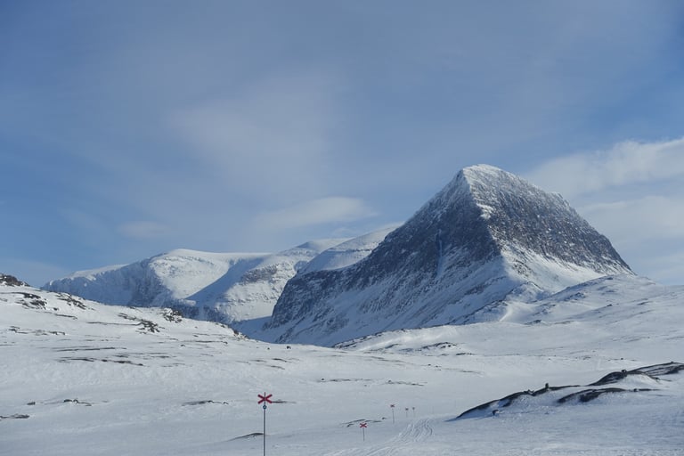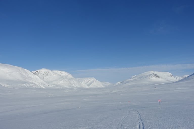 Après plusieurs mois dédiés aux longues sorties en ski de fond pour la Vasaloppet, l'envie de faire du ski de rando était très forte. J'ai donc organisé une expédition hybride. Une base en itinérance en skis nordiques avec la tente et la pulka. Avec l'idée de faire des camps de base pour du ski de rando. Pour le tracé, ce sera presque sans hésitation le Kungsleden. Je m'étais promise d'y revenir l'hiver en 2014, il était temps ! Départ pour 14 jours seule entre Abisko et Nikkaluokta. Du 13 au 26 mars 2022.