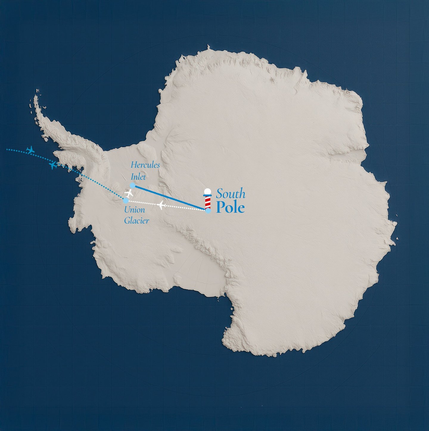 Itinéraire : 1150 km et 50 jours. Cette traversée est difficile et engagée. Il y fait jusqu'à –50 °C et le vent est presque incessant. Elle n’a été réalisée que par 17 femmes seules sans assistance.
